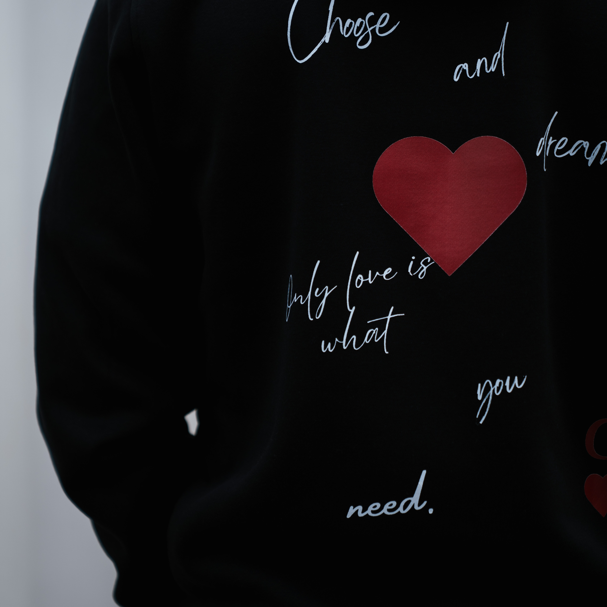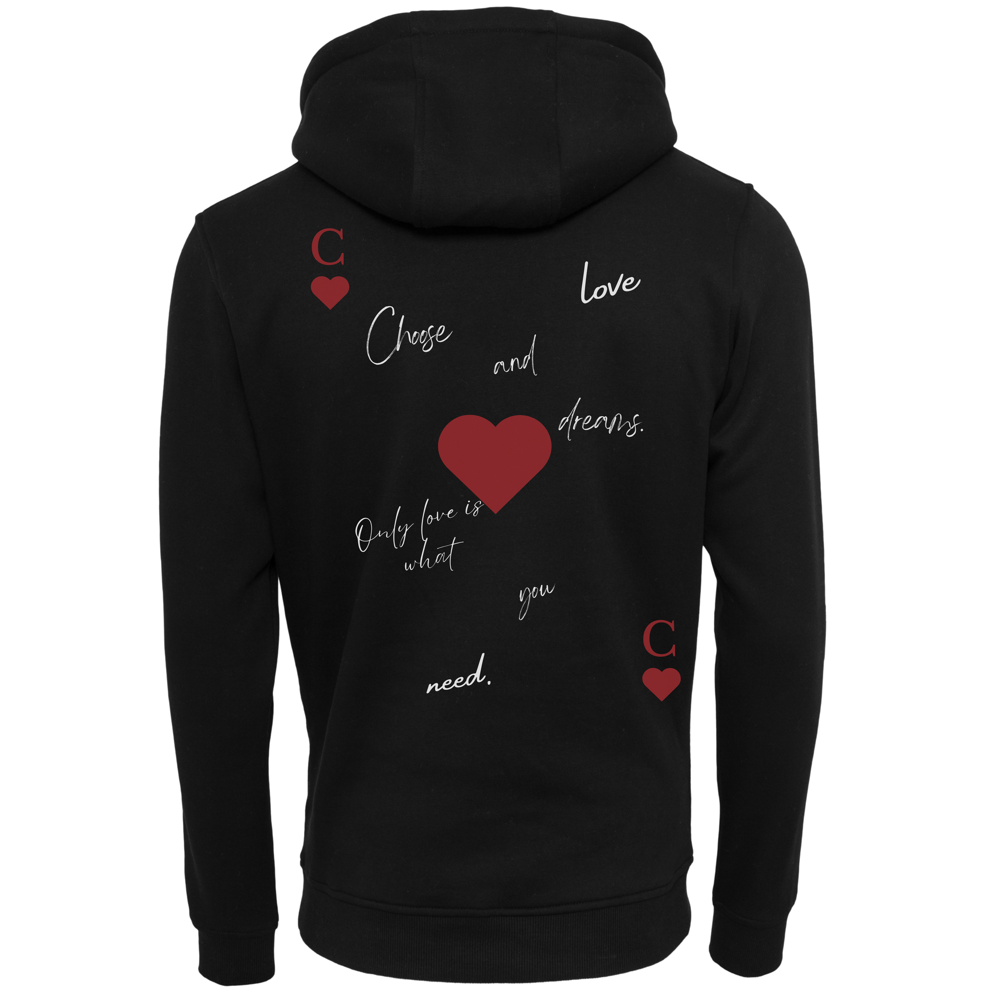 Elevate your everyday style with this modern men’s hoodie featuring a unique artistic back print. Designed with handwritten typography and subtle heart details, the message celebrates love, dreams, and self-expression. The minimalist front keeps it clean, while the statement back design adds character and depth.